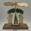 This item was crafted in the Erzgebirge Region of Germany. Created by Harald Kreissl, this intricate decoration can be displayed on a shelf, mantle or desk at Christmas time and requires tealight candles.